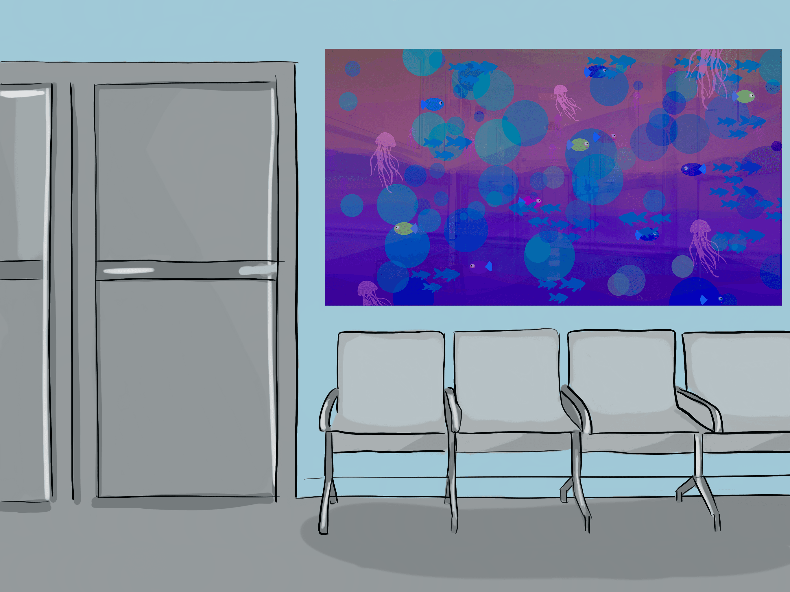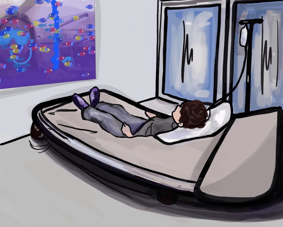 The goal of Immersea is to relax, distract, and entertain pediatric patients waiting in the hospital.