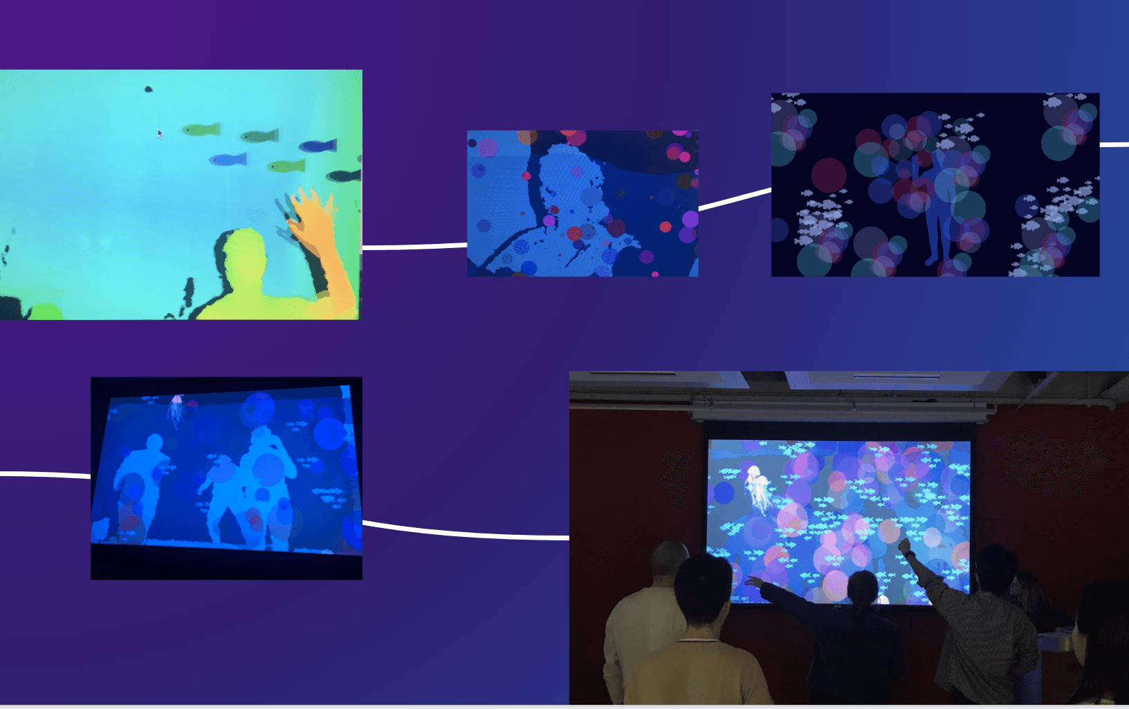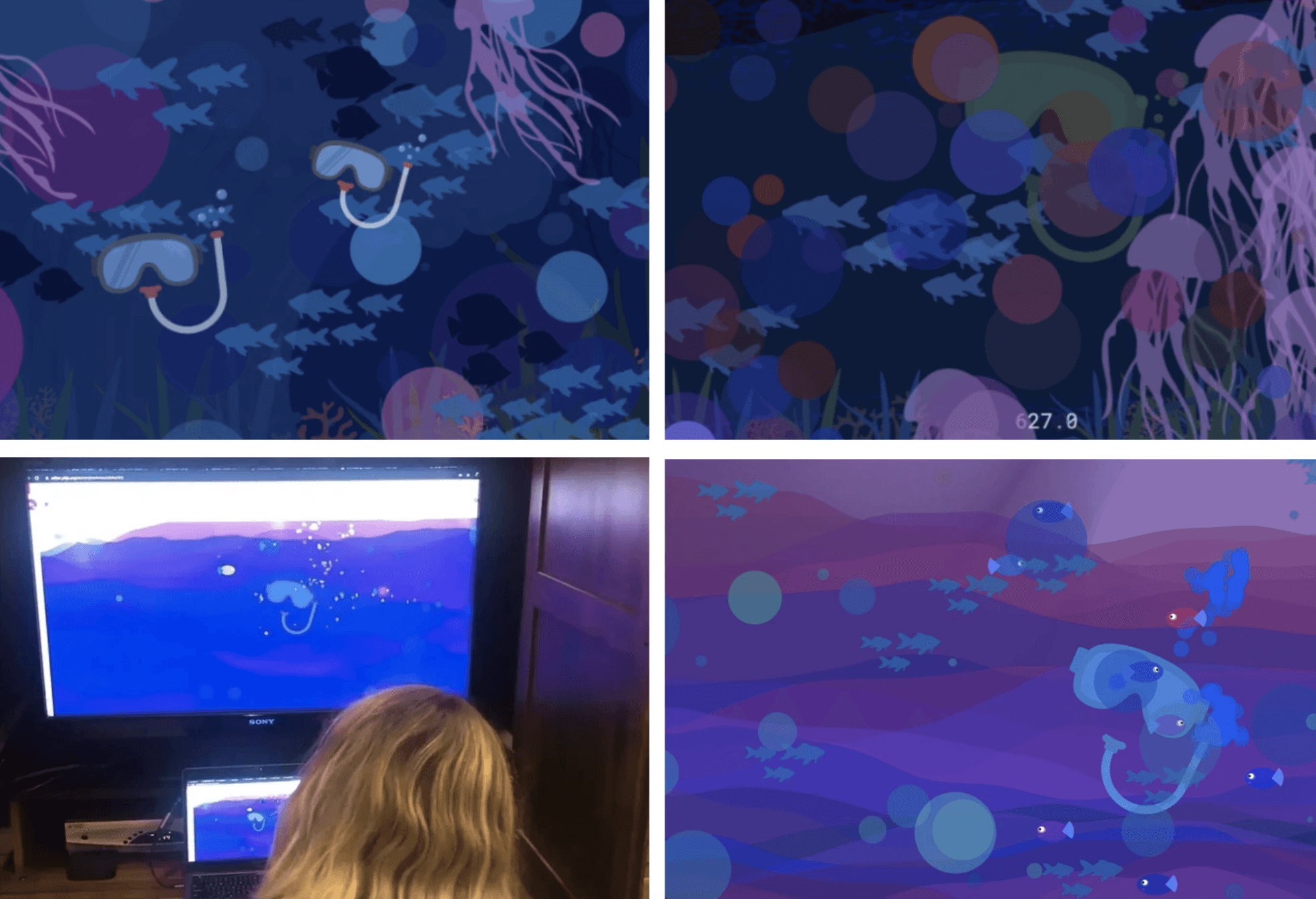 I developed an AI-powered interactive aquarium experience using creative coding, Machine Learning, and PoseNet. This single or multi-player experience assigns each user a snorkel and doesn't require touching a screen or holding a controller. While it starts as a tranquil underwater scene, user interaction can turn it into a game. However, users can also choose to just enjoy its calming elements.