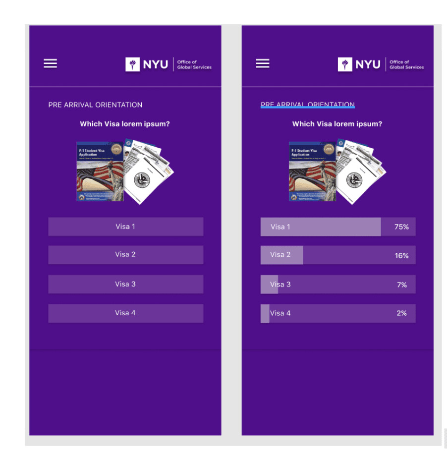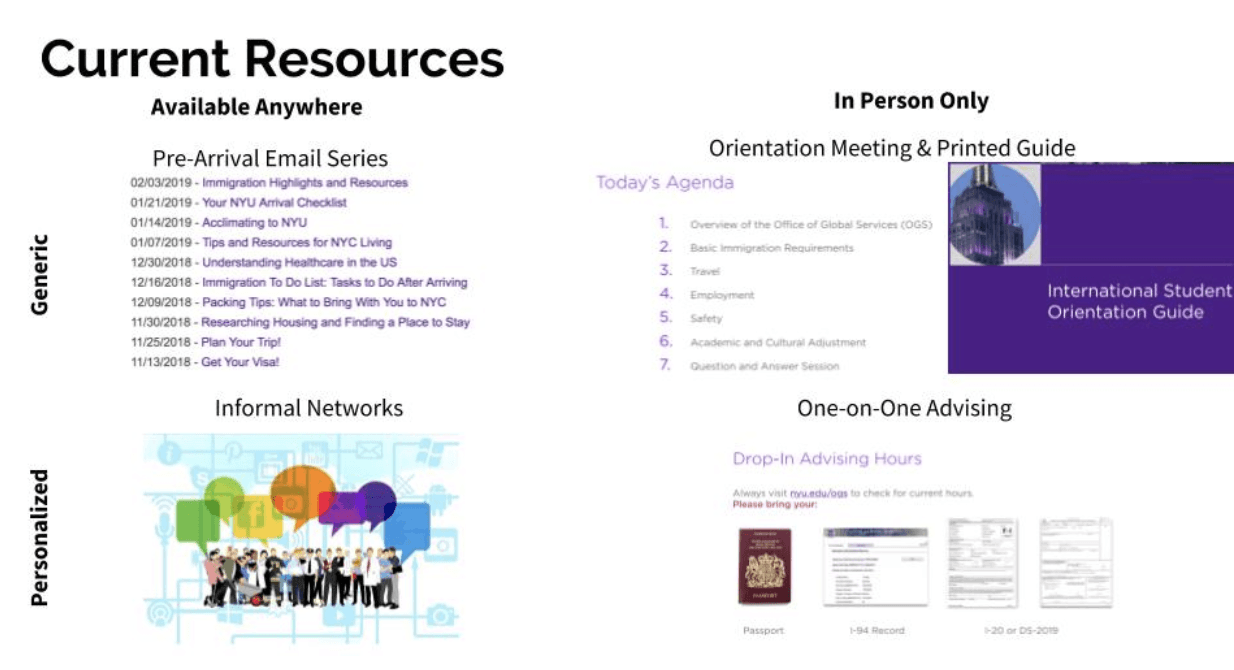 The NYU Office of Global Services (OGS) Orientation App project was initiated to address a key challenge faced by international students at NYU: navigating the complex maze of university procedures and adjusting to a new cultural environment. Typically, new students encountered these details during the in-person New Student Orientation, which was often overwhelming, leading to information overload. As a result, many students struggled to retain critical information, impacting their compliance with university policies.